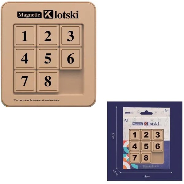 - состоит из 8 клеток, которые необходимо перемещать по квадратной рамке, чтобы собрать их в правильном порядке