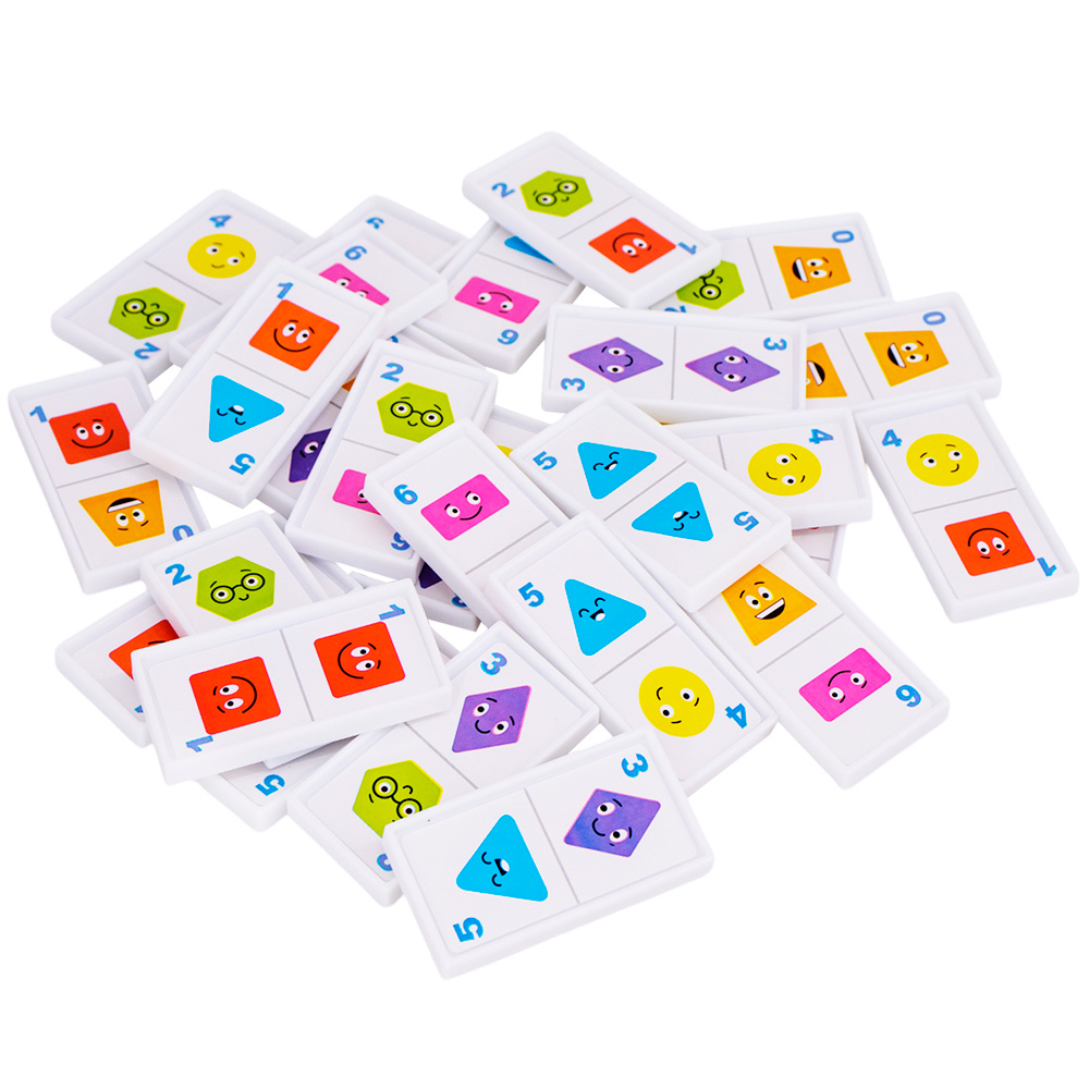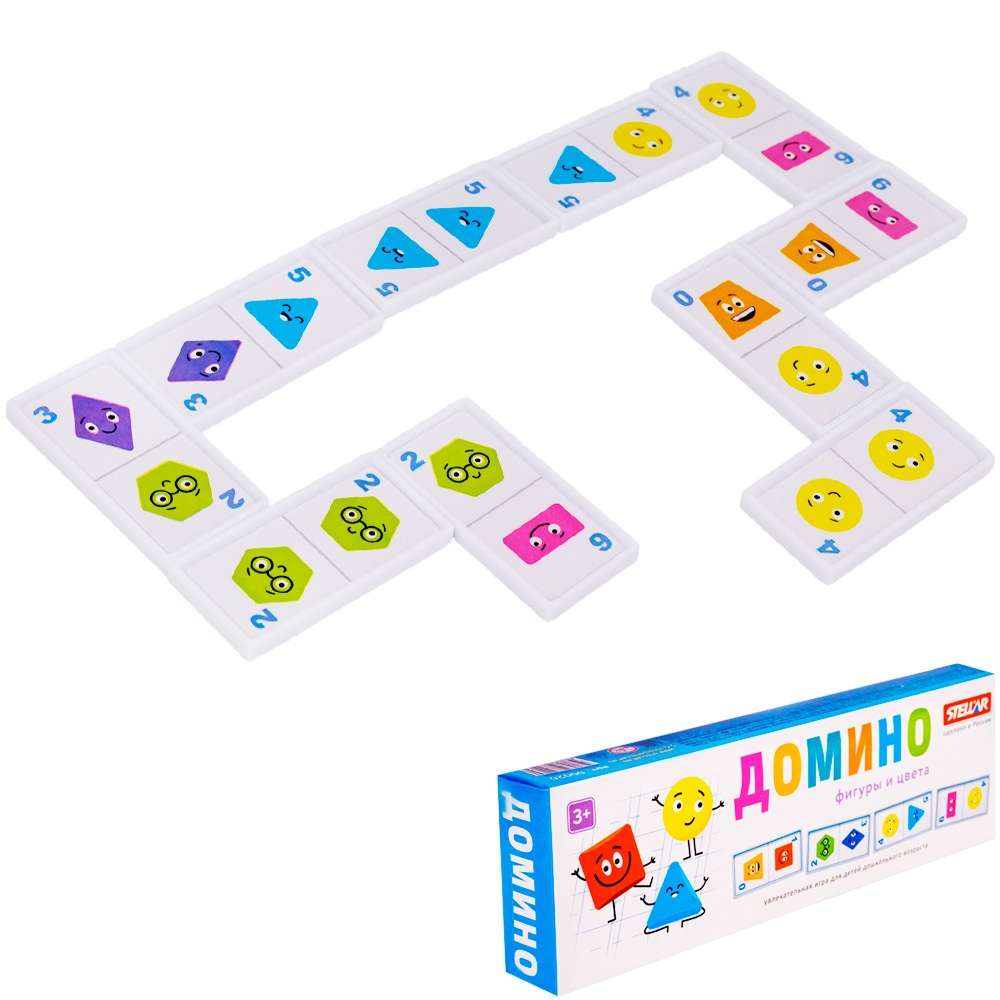 Игра состоит из фишек, на лицевую которых сторону нанесены фигуры и цифры от 0 до 6.