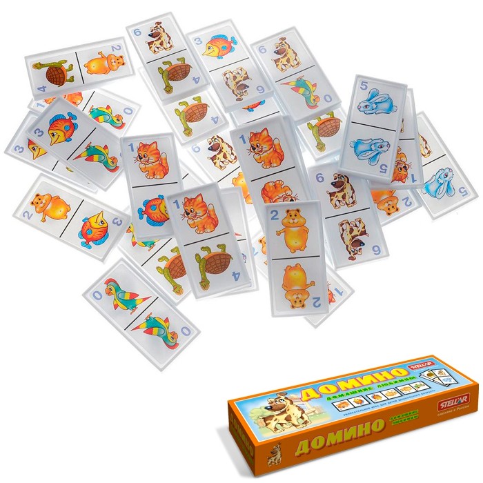 Домино «Домашние любимцы» непременно будет интересно малышу. Принцип игры тот же, что и во взрослой игре, только вместо точек на костяшках нарисованы яркие картинки с различными питомцами - собачками, кошками, рыбками и другими животными. Складывая костяшки одинаковыми изображениями друг к другу, ребенок будет тренировать зрительную память, ориентацию на плоскости, внимание и мелкую моторику, а также расширит свой кругозор и познакомится многообразием домашних любимцев.
