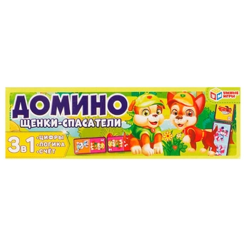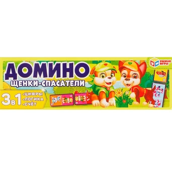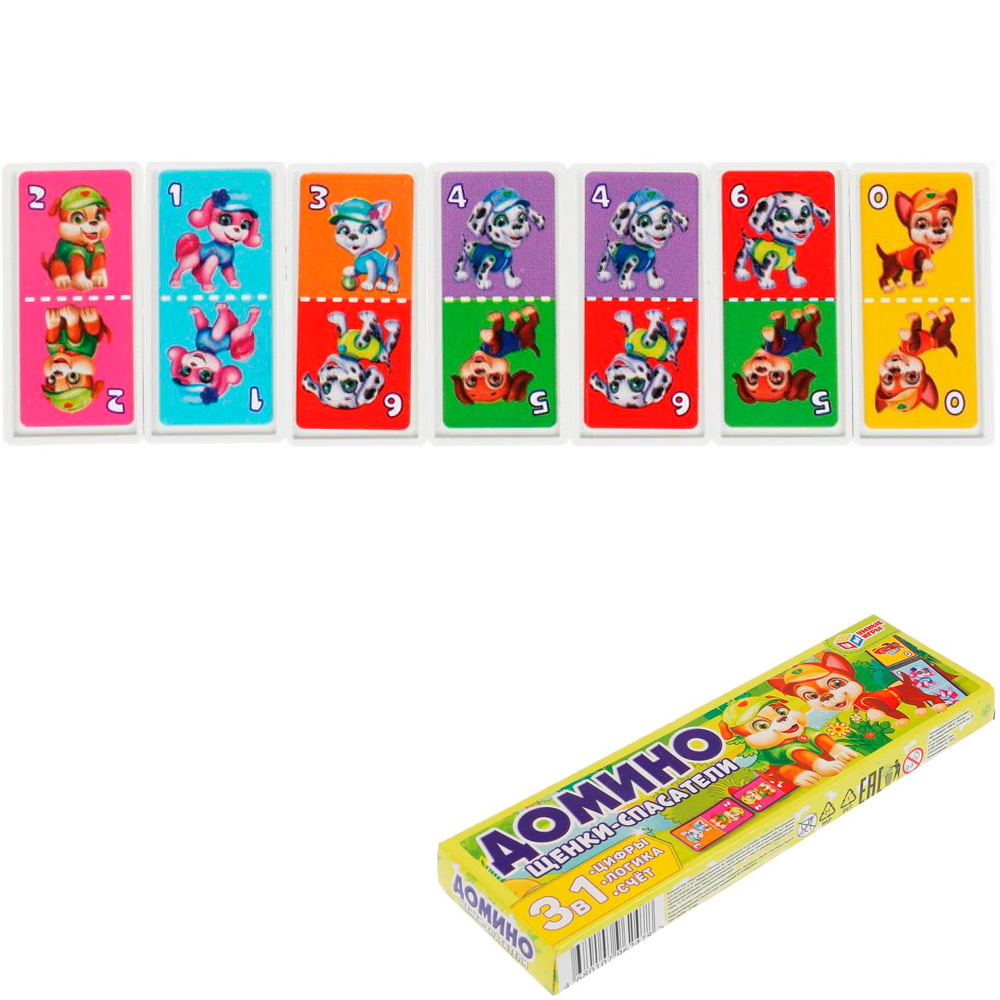 Пластиковое домино "Щенки-спасатели" ТМ "Умные игры" - интересная развивающая игра для детей: - 3 в 1: цифры, логика, счёт - фишки с изображением милых персонажей