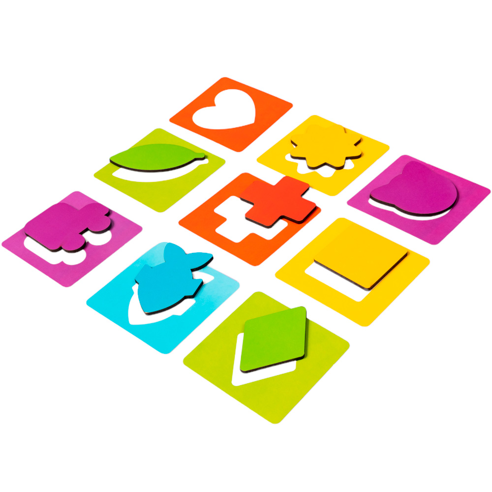 Комплектация: 28 карточек с изображенными контурами, 28 деревянных фишек разной формы,