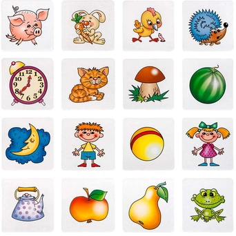 - выигрывает тот, кто первым накроет фишками все картинки.