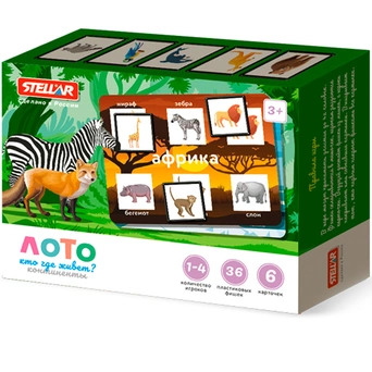 Комплектация: карточки - 6 шт., фишки - 36 шт., мешочек - 1 шт.