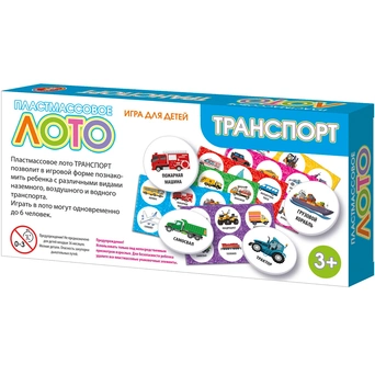 Изучайте вместе со своим малышом в игровой форме различные виды транспорта. В комплект игры входит: 6 картонных карточек, 36 пластмассовых фишек, мешочек для фишек, инструкция. Лото «Транспорт» развивает память, усидчивость, внимательность, аккуратность, расширяет кругозор и тренирует мелкую моторику рук.