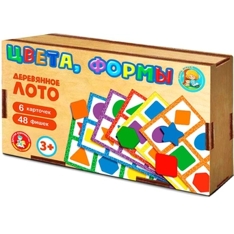 Деревянное лото «Цвета и формы» в деревянной коробке - это веселая игра для маленьких гениев!