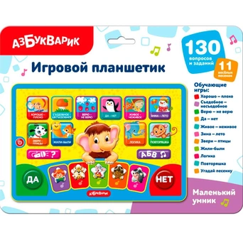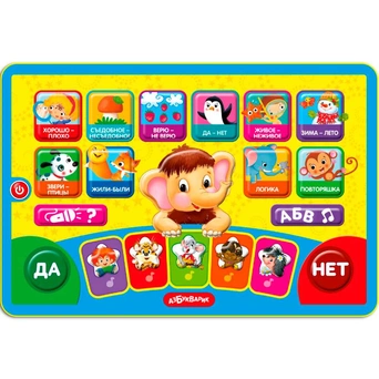 Красочное и функциональное изделие содержит кнопки, нажав на которые можно услышать звуки, мелодии, информацию.