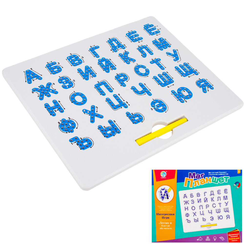 В комплект входит планшет с железными шариками внутри и ручка-магнит.