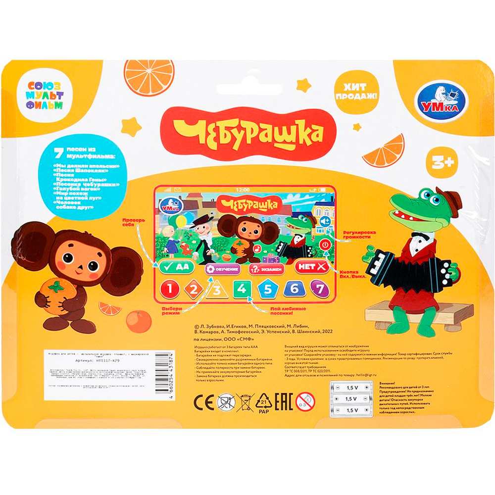 Обучающий планшетик «Чебурашка. Повторюшка» ТМ «УМка» станет прекрасным подарком для маленьких поклонников известного мультфильма студии «Союзмультфильм».