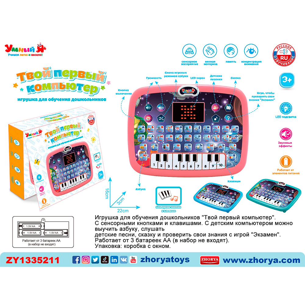Он содержит веселые мелодии, обучающие функции, яркие картинки.