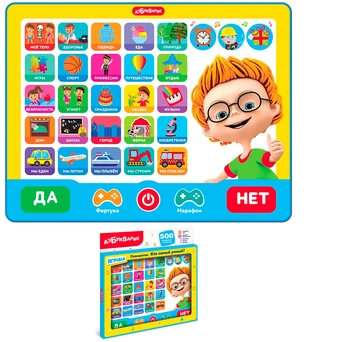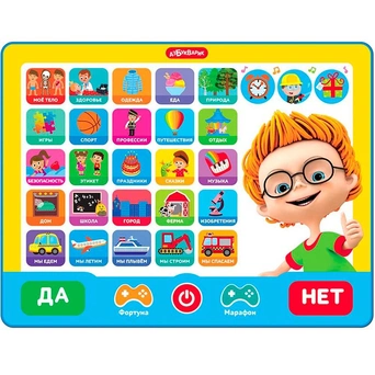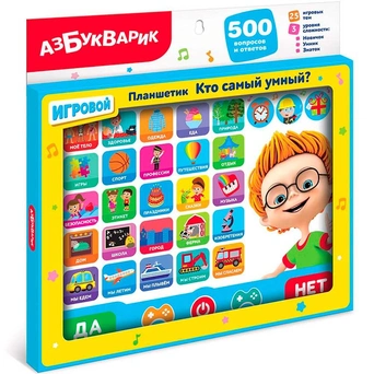 Функционал: игровой развивающий планшет, обучающие функции, музыкальные эффекты, 500 вопросов и ответов, 25 игровых тем, 3 уровня сложности