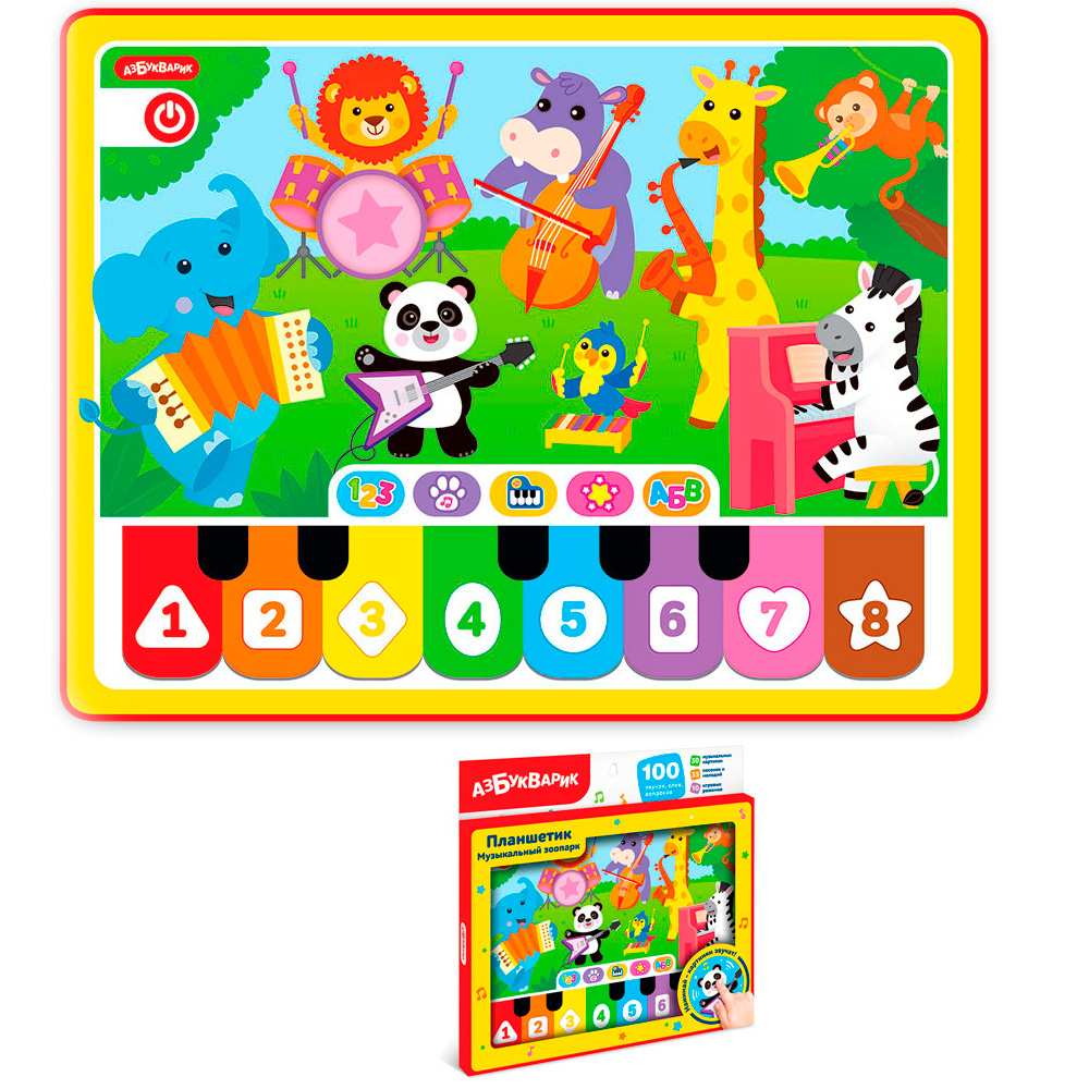 Функционал: игровой развивающий планшет, обучающие функции, музыкальные эффекты, 100 звуков, слов и вопросов, 30 музыкальных картинок, 35 песен и мелодий, 10 игровых режимов