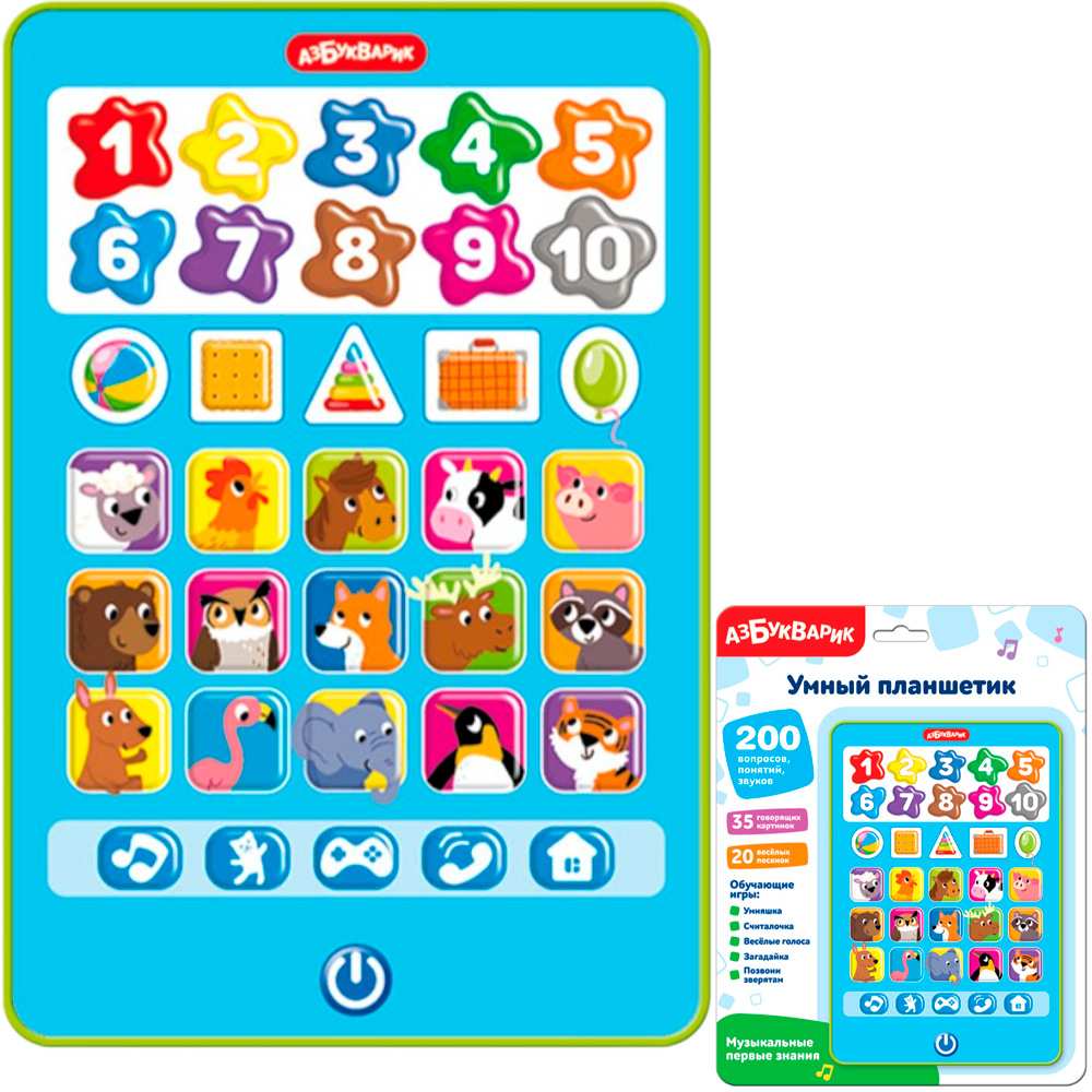 Он содержит веселые мелодии, обучающие функции, яркие картинки.