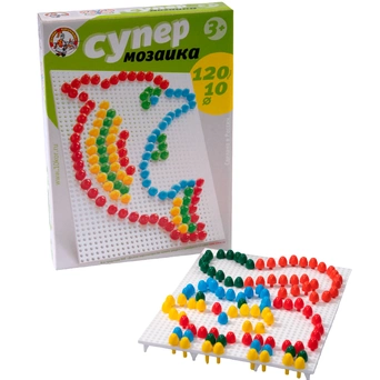 Набор цветной пластиковой мозаики, состоящей из 120 деталей пяти разных цветов дает широкий простор для детского творчества и фантазии. Диаметр фишки - 1 см, и они очень удобны для детской руки. Это отличная игра, предназначенная для развития мелкой моторики, воображения и изучения цветов.