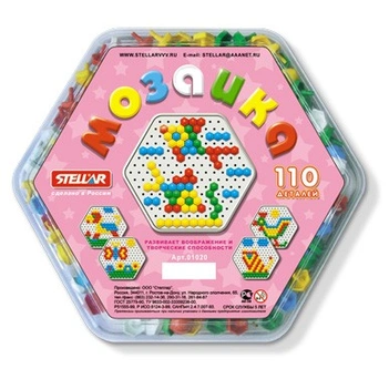 Комплектация: детали мозаики - 110 шт. (5 цветов), полеМатериал: пластик