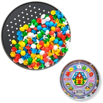 Знакомая с детства шестигранная мозаика на кругом поле - в ярком исполнении. Игрушка изготовлена из качественного, нетоксичного пластика. Целых 150 фишек, диаметром 1,3 см, дают большой простор для детского творчества и фантазии, развивают мелкую моторику, пространственное воображение и цветовое восприятие. На этикетке изображены несколько примеров сборки, которым ребенок может следовать при знакомстве с игрой, а затем придумывать собственные варианты картинок. Мозаика находится в удобном пластиковом футляре, благодаря которому мелкие детали не растеряются.
