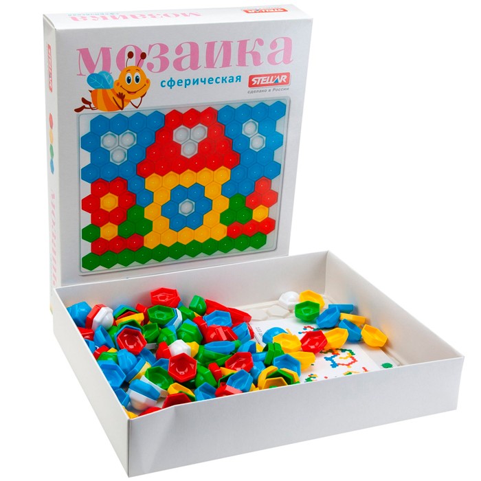 Отличный набор мозаики, состоящий из 150 фишек разных цветов, диаметром 3 см. В процессе игры ребенок формирует картинку из фишек с ножками на белом поле с отверстиями, тренируя при этом мелкую моторику, ориентацию на плоскости, цветовое восприятие и логическое мышление. На коробке имеются картинки с уже готовыми вариантами сборки, которые при желании можно повторить, изменить и дополнить их чем-то своим.