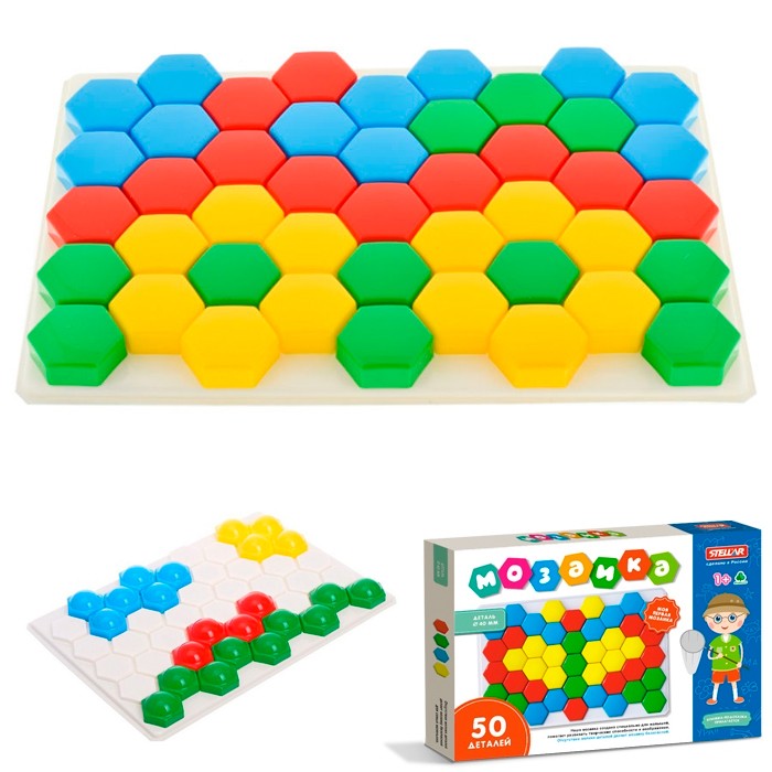 Мозаика из крупных элементов ярких цветов прекрасно подойдет для малышей. С ней они смогут составлять первые орнаменты и фигуры, тренируя свою фантазию и воображение, одновременно учась правильному захвату предметов. Изделие изготовлено из качественных нетоксичных материалов, безопасных для здоровья ребенка.