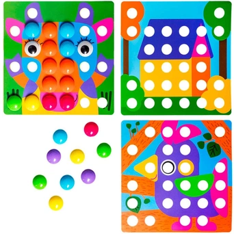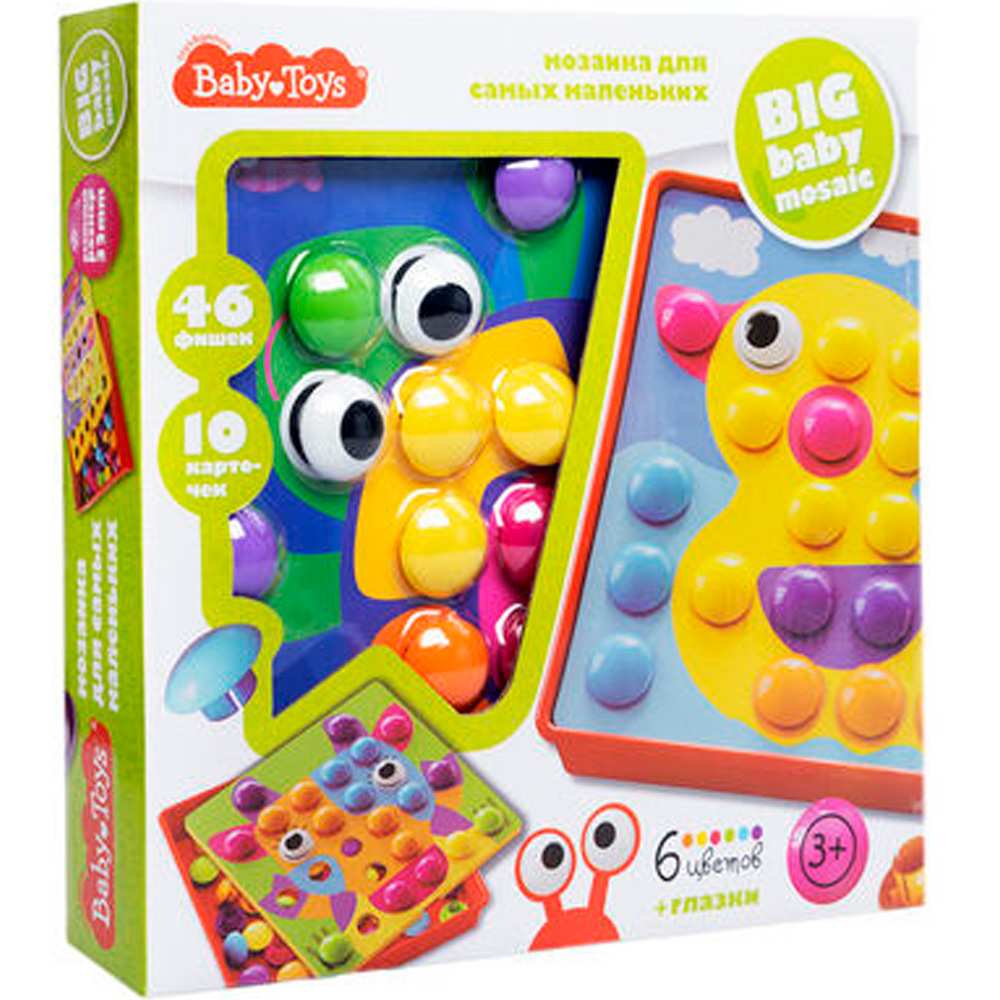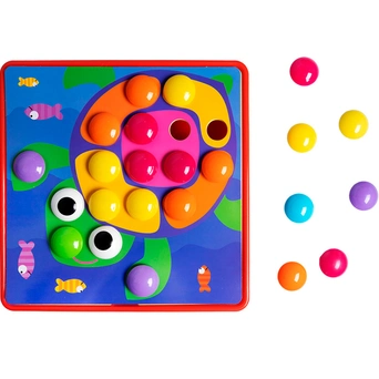 Комплектация: детали - 44 шт. (6 цв.), игровое поле - 1 шт., поддон - 1 шт., картинки - 10 шт., глазки - 2 шт.