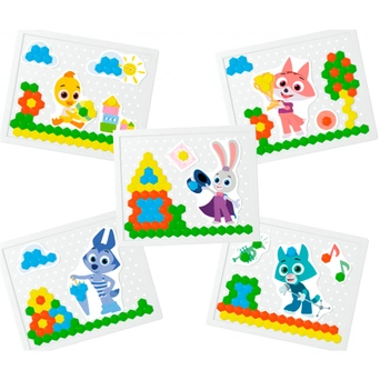 Комплектация: детали мозаики - 110 шт. (4 цв.), игровое поле - 1 шт., картинки