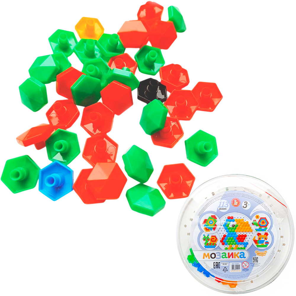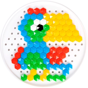 Эта классическая детская мозаика состоит из множества деталей различных цветов шестигранной формы, что позволяет на основе со множеством точек собирать всевозможные рисунки.