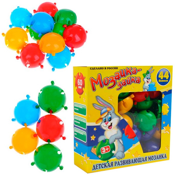 Размер упаковки- 25*25*9 смМозаика - зайка способствует развитию моторики и сенсорики, пространственного воображения и восприятию цвета. Отсутствие мелких деталей делает мозаику безопасной для самых маленьких, детали хорошо сцепляются друг с другом.