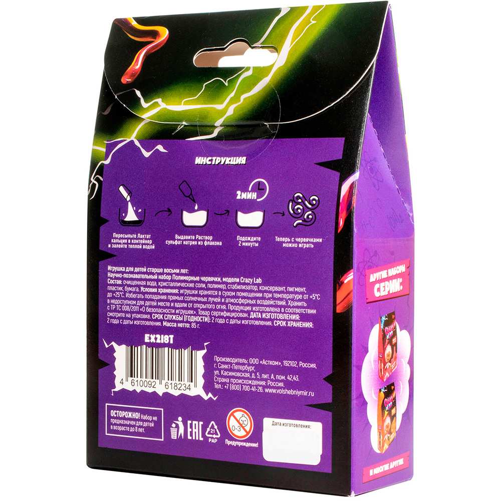 Набор для опытов Научно-познавательный набор модели Crazy Lab Полимерные червячки EX218T