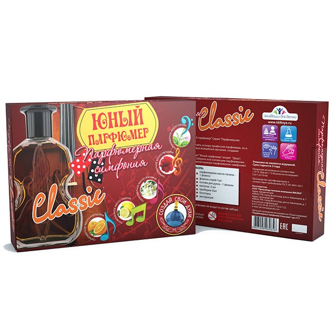В этот набор входит все необходимое, что может пригодиться для успешной работы и создания собственной коллекции духов. В комплекте имеются настоящие эфирные масла пачули, жасмина, гвоздики, лимона и апельсина. Пользуясь имеющимися компонентами, а также специальной лабораторной посудой, ребенок сможет заниматься экспериментами, создавая необыкновенные ароматы, развивая таким образов творческое мышление, воображение и внимательность.