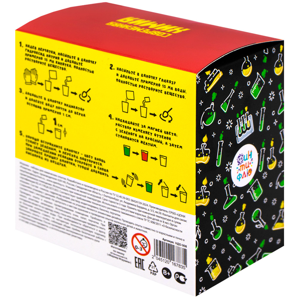 Комплектация: глюкоза, гидроксид натрия, раствор индигокармина, баночка, перчатки