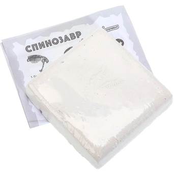 С помощью инструментов, входящих в набор, ребенок сможет снять с бруска слой гипса, откопать фигурку, а остатки гипса удалить щеточкой или при помощи воды.