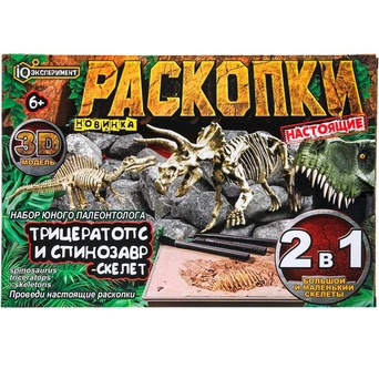 Комплектация: брусок гипсовый - 2 шт., скелет - 2 шт., молоток - 1 шт., скребок - 1 шт., кисть - 1 шт., карточка - 2 шт.