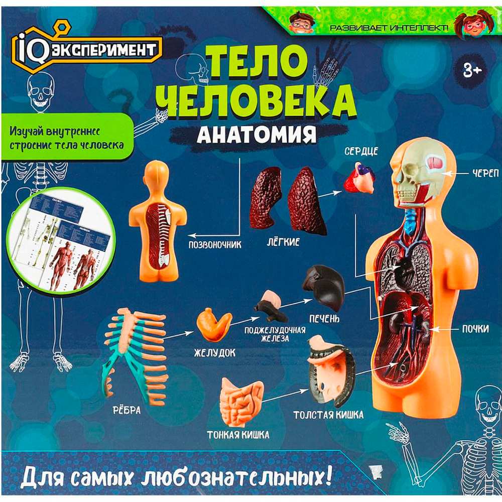 Комплектация: подставка, фигура, детали (кости, органы) - 10 шт., буклет - 2 шт.