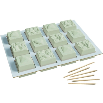 Комплектация: брусок гипсовый - 12 шт., кристалл - 10 шт., бриллиант - 40 шт., стек - 1 шт.