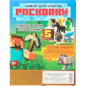 С помощью инструментов, входящих в набор, ребенок сможет снять с бруска слой гипса, откопать фигурку, а остатки гипса удалить щеточкой или при помощи воды.