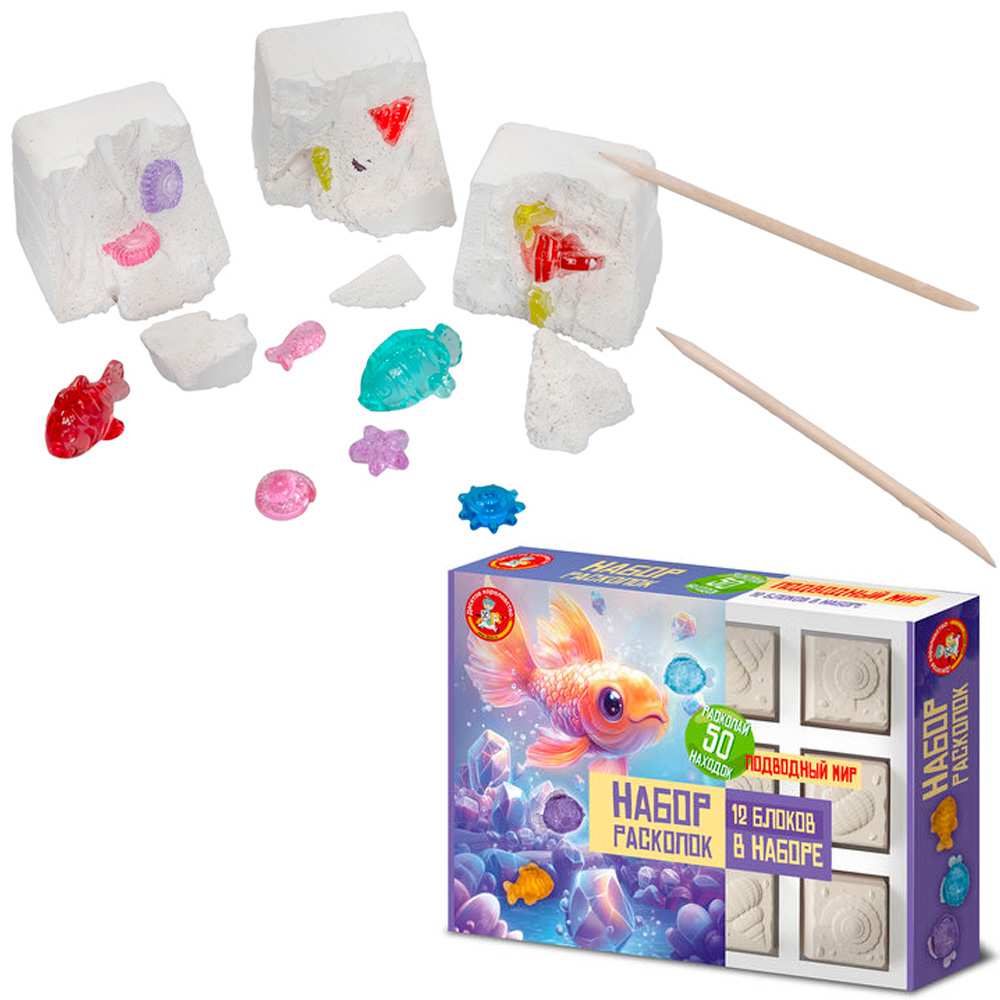 Комплектация: брусок гипсовый - 12 шт., рыбка - 12 шт., морские обитатели - 38 шт., стек - 1 шт.