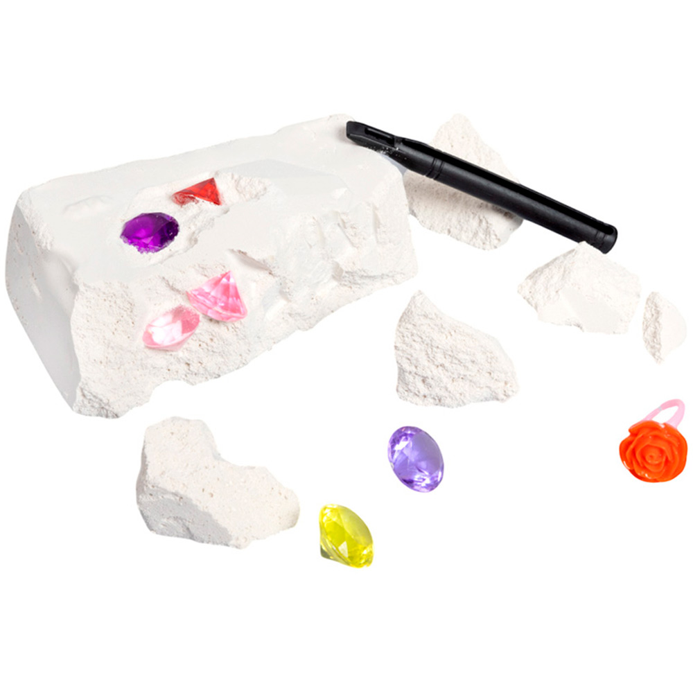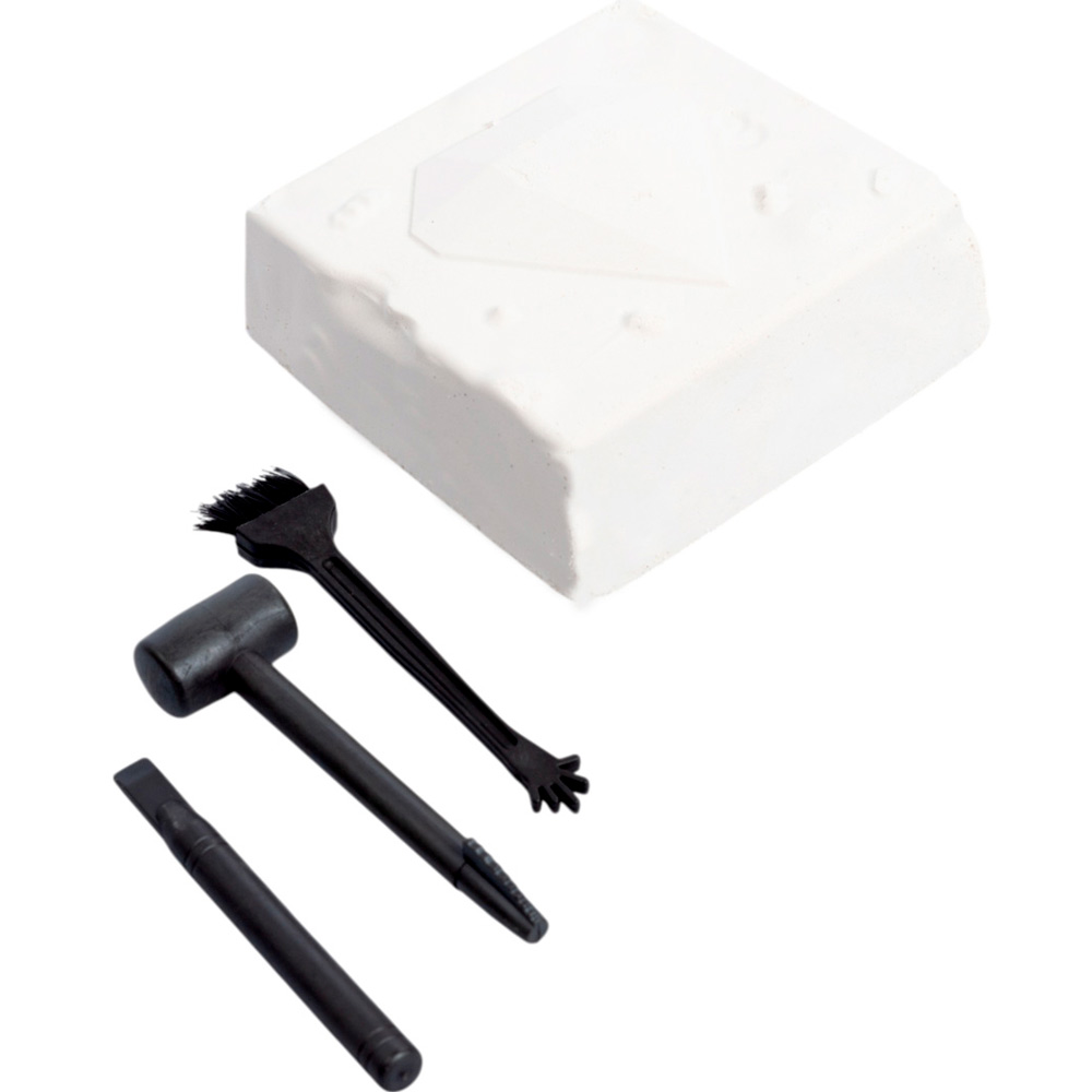 С помощью инструментов, входящих в набор, ребенок сможет снять с бруска слой гипса, откопать фигурку, а остатки гипса удалить щеточкой или при помощи воды.