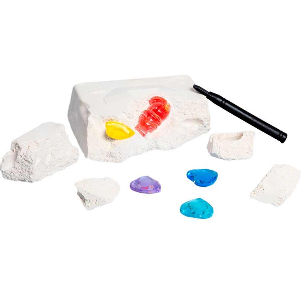 С помощью инструментов, входящих в набор, ребенок сможет снять с бруска слой гипса, откопать фигурку, а остатки гипса удалить щеточкой или при помощи воды.