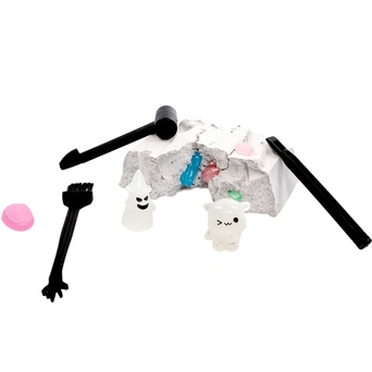 С помощью инструментов, входящих в набор, ребенок сможет снять с бруска слой гипса, откопать фигурку, а остатки гипса удалить щеточкой или при помощи воды.