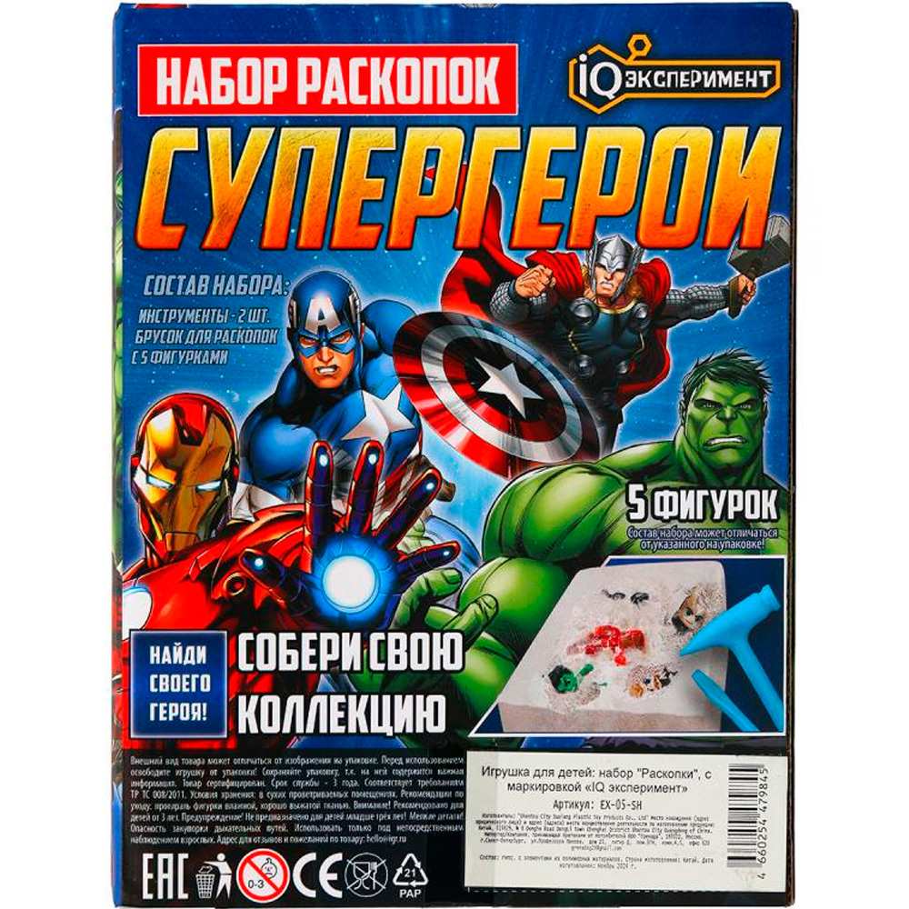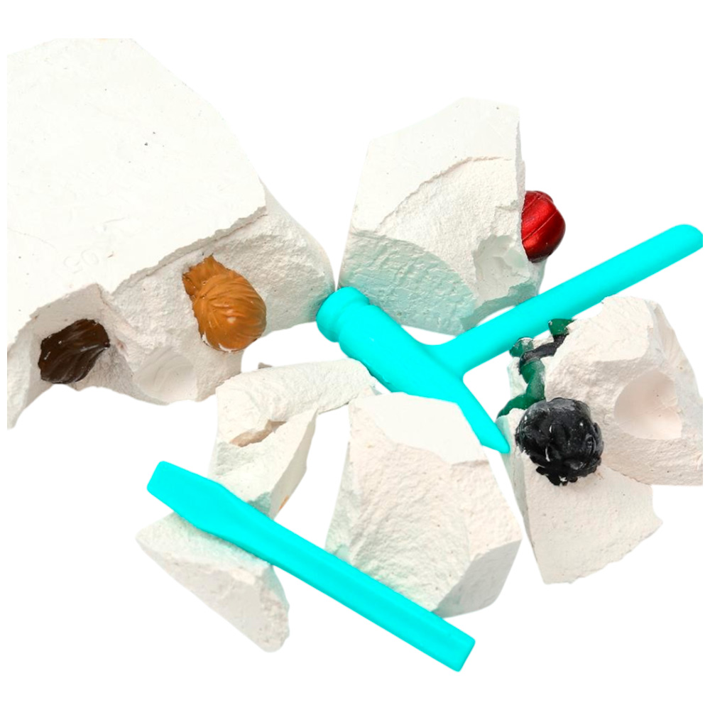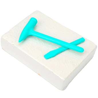С помощью инструментов, входящих в набор, ребенок сможет снять с бруска слой гипса, откопать фигурку, а остатки гипса удалить щеточкой или при помощи воды.
