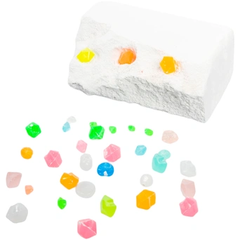 С помощью инструментов, входящих в набор, ребенок сможет снять с бруска слой гипса, откопать светящиеся кристаллы, а остатки гипса удалить щеточкой или при помощи воды.