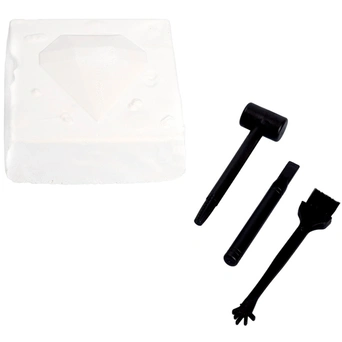 С помощью инструментов, входящих в набор, ребенок сможет снять с бруска слой гипса, откопать фигурку, а остатки гипса удалить щеточкой или при помощи воды.