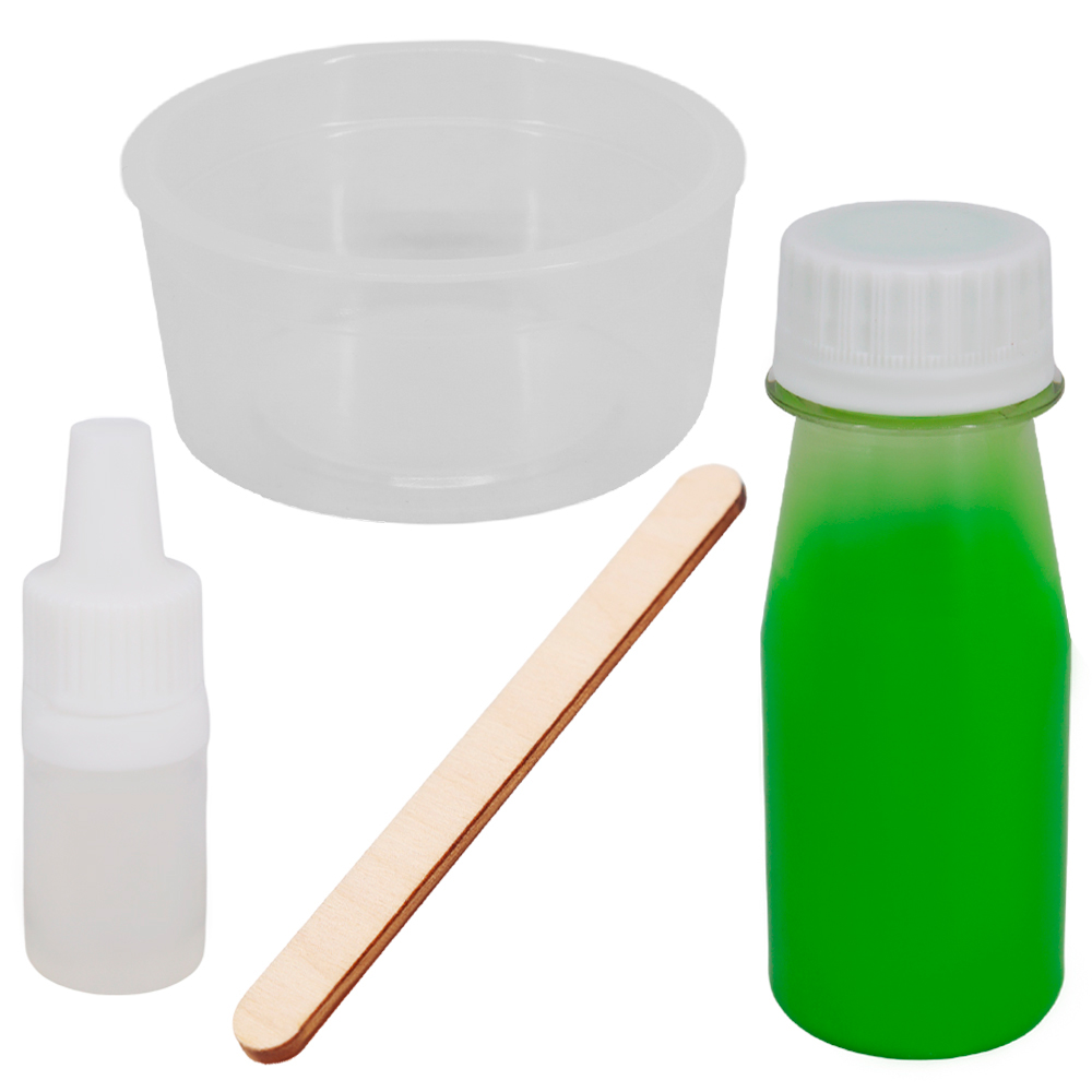 Комплектация: раствор (поливиниловый спирт, краситель, ароматизатор) - 1 уп., раствор (тетраборат натрия, глицерин) - 1 уп., ёмкость - 1 шт., палочка - 1 шт., перчатки - 1 пара, инструкция - 1 шт.