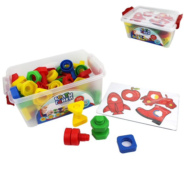 Конструктор представляет собой сборную картинку: на картинку-основу нужно прикрутить цветные шурупы и гайки разной формы. В процессе этой увлекательной игры малыш научится отвинчивать и завинчивать гайки, будет тренировать внимание, мелкую моторику и мышление. Игрушка красочно оформлена и изготовлена из качественного пластика с применением безопасных красителей.