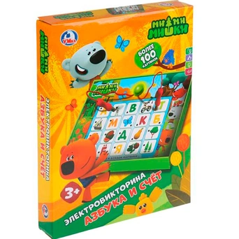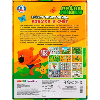 В яркой игре на двусторонних карточках более 100 красочных картинок с 12-ю заданиями. Герои любимого мультика помогут ребенку решить все задачки. На карточках изображены буквы, цифры, разные предметы и любимы персонажи детей из мультфильма "Ми-Ми-Мишки". Световой сигнал всегда подскажет правильный ответ. Электровикторина способствует ориентации на плоскости, обучению буквам русского алфавита, цифрам, счёту. Такие игры развивают интеллект, мышление, память, внимание и логику. Укомплектовано 3 батарейками типа LR41 (батарейки меняются).