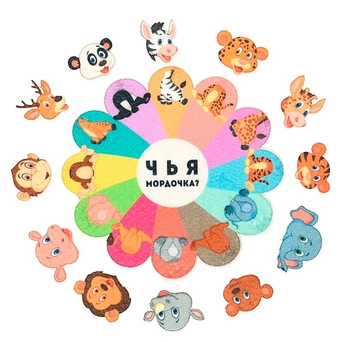 Комплектация: игровое поле (15 х 15 см) – 1 шт., мордочки животных – 12 шт.
