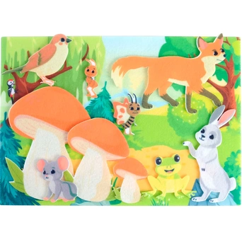 Комплектация: игровое поле - 1 шт., воробей - 1 шт., пчела - 1 шт., муравей - 1 шт., лягушка - 1 шт., заяц - 1 шт., лиса - 1 шт., мышка - 1 шт., гриб - 3 шт., инструкция - 1 шт.