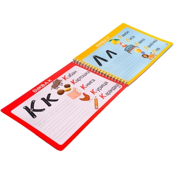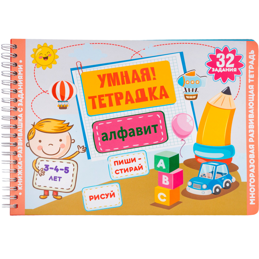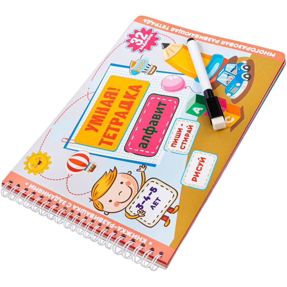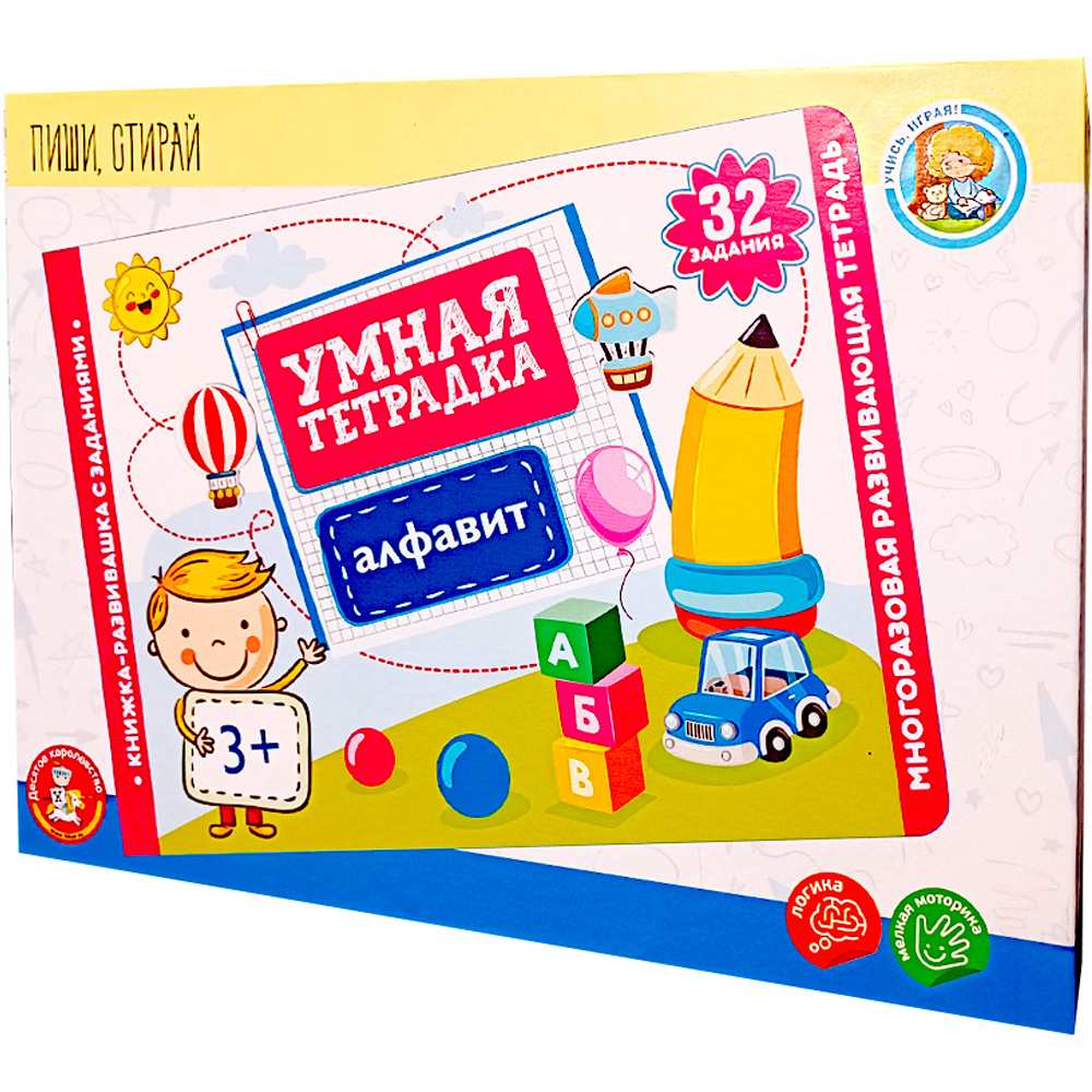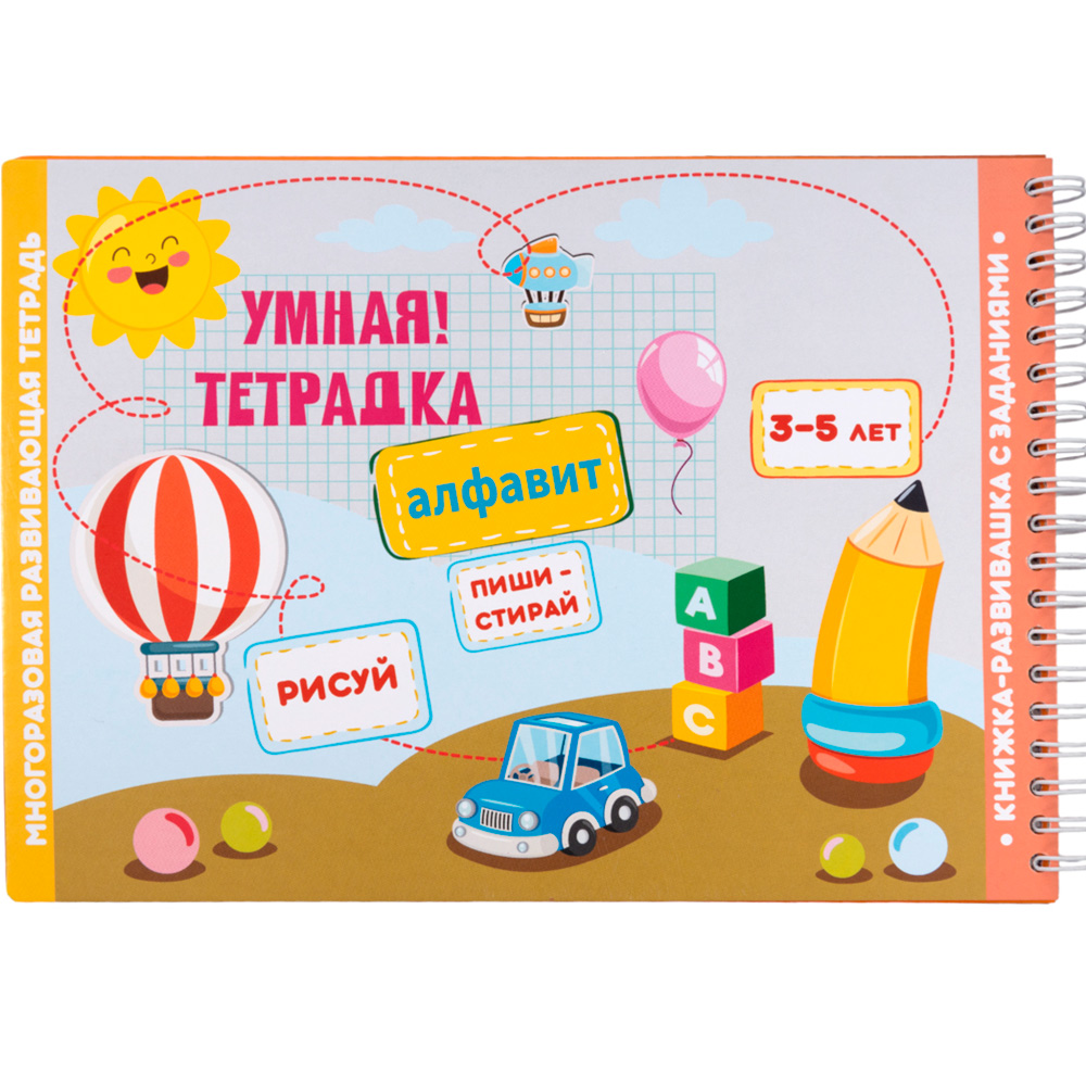 Развивающая рабочая тетрадь с заданиями состоит из страниц со специальным защитным покрытием, обеспечивающим многоразовое использование.