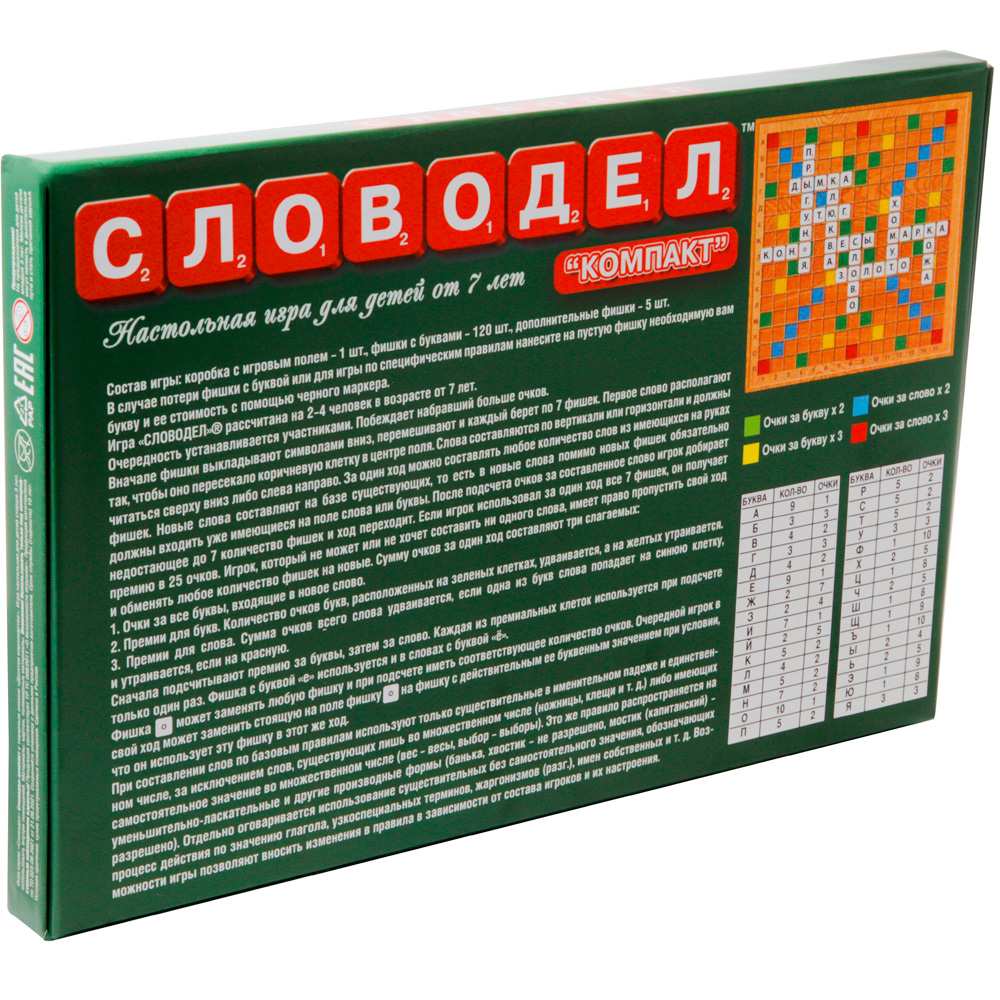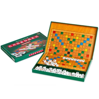 Настольная игра "Словодел" - прекрасная игра для веселого досуга в кругу семьи. В начале игры фишки выкладываются картинками вниз, перемешиваются и каждый игрок берет по семь фишек. Первое слово располагается так, чтобы оно пересекало центральную клетку в центре поля. Слова составляются по вертикали и горизонтали и должны читаться сверху вниз, либо слева направо.За один ход можно составлять любое количество слов из имеющихся на руках фишек. Новые слова составляются на базе существующих. После подсчета очков за составленное слово, игрок добирает недостающее до 7 количество фишек, и ход переходит к следующему игроку. Если игрок использовал за один ход все 7 фишек, то он получает премию в
