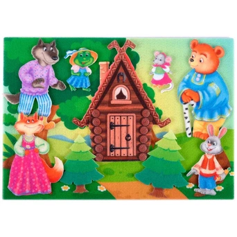 Комплектация: игровое поле - 1 шт., теремок - 1 шт., лягушка - 1 шт., мышка - 1 шт., заяц - 1 шт., лиса - 1 шт., волк - 1 шт., медведь - 1 шт., ежик - 1 шт., солнце - 1 шт., елочка - 1 шт.