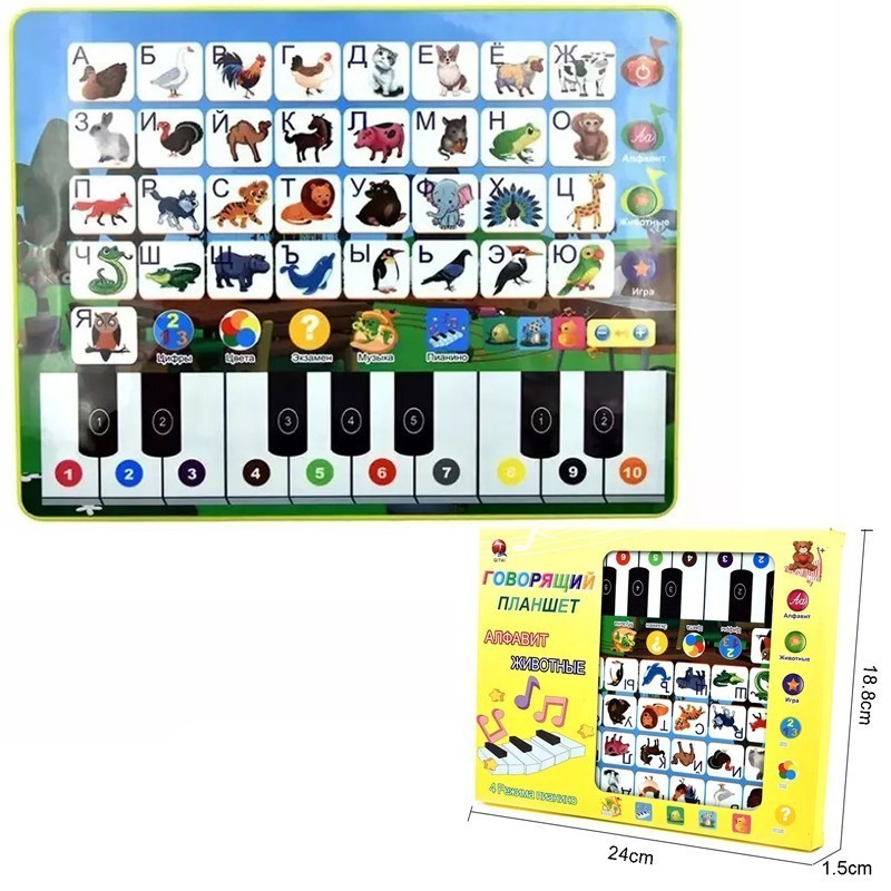 Яркий музыкальный планшет обязательно понравится ребенку и поможет ему в обучении.