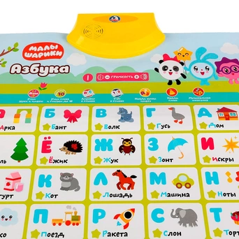 Функционал: включение/выключение, регулировка громкости, обучающие функции, стихи и песенки, азбука и счет